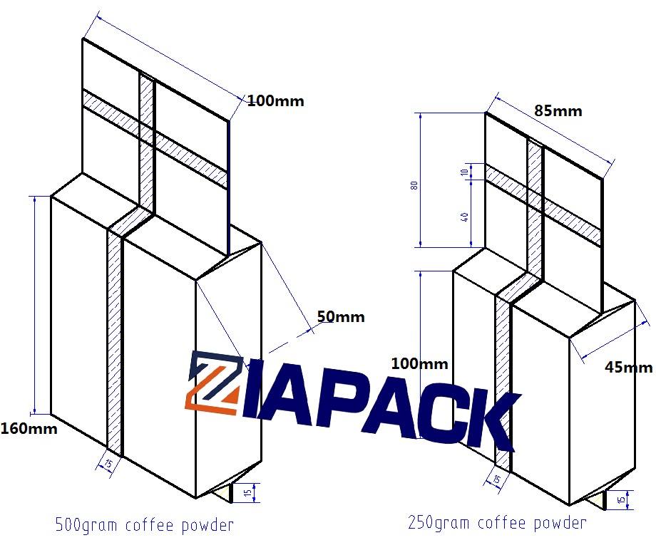 Šī iekārta ietver vienu komplektu ZL520 vertikālo maisiņu iesaiņošanas un aizzīmogošanas mašīnu. Viens komplekts ZL2000 Auger mērīšanas mašīna, viens komplekts ZL100V2 dubultās vakuuma kameras iepakošanas mašīna un viens komplekts izvadkonveijers. Iekārtai ir maisiņu formēšanas, produktu iepildīšanas, maisiņu tīrīšanas funkcija. un putekļsūcēju .Var izvēlēties termiskās pārneses kodēšanas iekārtu, kas ir vairāk populāra datuma kodēšanai uz kafijas ķieģeļu vakuuma maisiņa. Šo mašīnu plaši izmanto pārtikas aptieku ķīmisko un citu produktu iepakošanai pulverī vai mazās granulās. Tāpat kā kafijas pulveris, rauga pulveris, kviešu milti un tā tālāk. Visa iekārta tiek sūknēta iekšā, lai sūknētu produktu. Vakuuma pakāpe ir ļoti augsta, un iepakošanas ātrums ir ļoti augsts, var sasniegt 8 maisus minūtē. Gatavais produkts ir ļoti jauks un tam ir ilgs glabāšanas laiks.