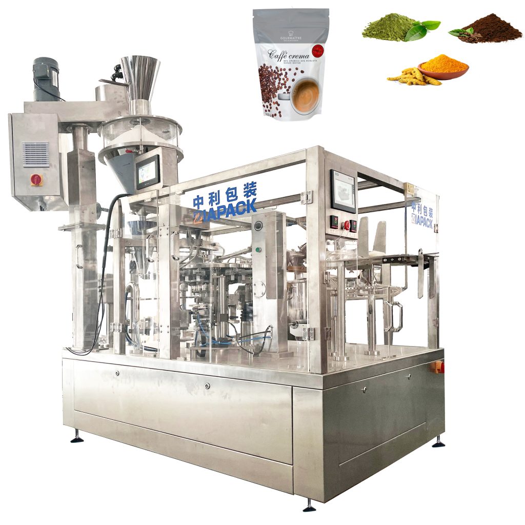 Rotācijas maisiņu iepakošanas mašīna ar dažādām dozēšanas metodēm (piemēram, multihead svars, gliemeža pildviela, šķidruma pildviela utt.), var būt piemērots automātiskai granulu, pulvera, šķidruma, pastas uc iepakošanai. Dažādi produkti ar premade stand-up maisiņu, plakanu maisiņu un tā tālāk.