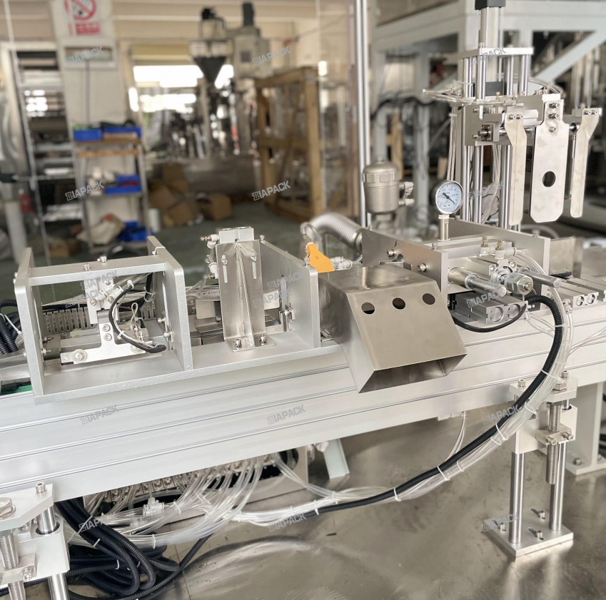 Šī iekārta ir īpaši izstrādāta, lai izgatavotu ieliktņa maisiņu ar augšējo marķējumu. Pēc pilna maisa ar produkta nomešanu uz šīs mašīnas. Šī iekārta nesīs maisiņu, vienu reizi salocīs maisiņu un pēc tam pielīmē etiķeti. Mašīnas rāmis ir izgatavots no Siemens zīmolu izmanto SUS304 .PLC un skārienekrānu. Un pneimatiskās daļas izmanto SMC zīmolu. Galvenie elektriskie komponenti izmanto Omron un Schneider zīmolus. Šī iekārta darbojas ar automātisko iepakošanas iekārtu, lai sasniegtu gatavo maisa augšdaļas marķējumu. Šī iekārta var automātiski sasniegt funkciju. no etiķetes atdalīta ,Etiķetes nosūtīšana .Etiķetes detektors un etiķetes nospiešana .