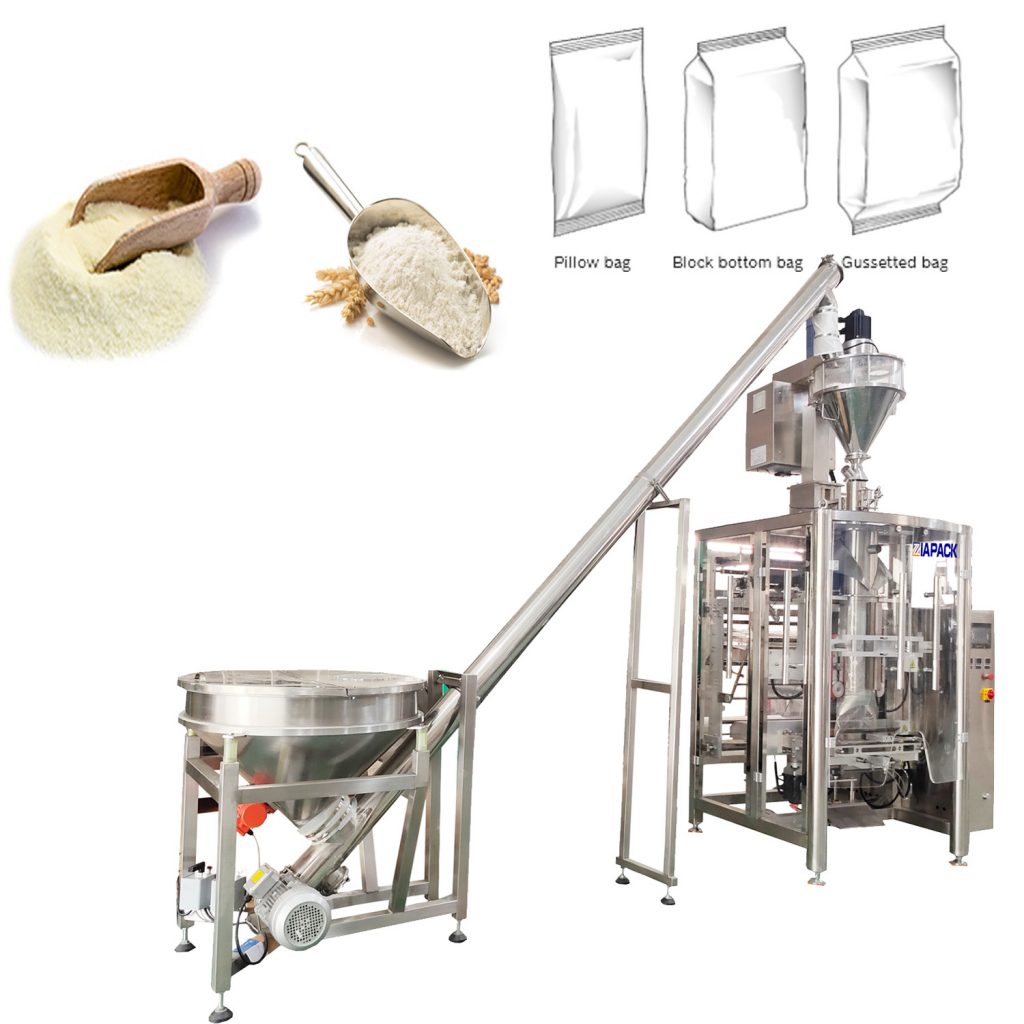 Šajā mašīnas blokā ir iekļauta viena ZL1100 vertikālās maisu formēšanas pildīšanas aizzīmogošanas mašīna un viena ZL2000 svārpsta mērierīce. Visa mašīnas vienība var sasniegt automātisko maisiņu izgatavošanu, produktu svēršanu, produktu pildījuma aizzīmogošanu un datuma kodēšanu. Plaši izmanto kviešu miltu, kafijas iepakošanai. pulveris un piena pulveris un citi pulverveida produkti.