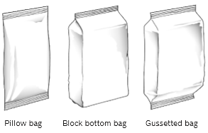 Plašs maisiņu klāsts: spilvenu soma, var izgatavot ar rievotu maisiņu, plakana dibena soma ar maiņas ierīci