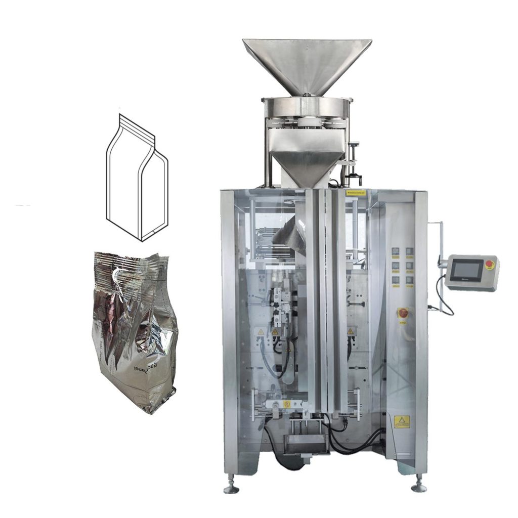 Automātisks daudzcentru svēršanas un vertikālais iepakojums ir apvienots vienā blokā (2 vienā tehnoloģijā), ko kontrolē PLC
